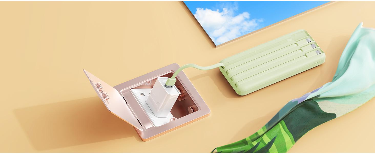 【Charge 6 Devices at Once】 3 built-in cables + 3 ports, power up multiple devices simultaneously. Supports 3 recharge methods for flexibility.